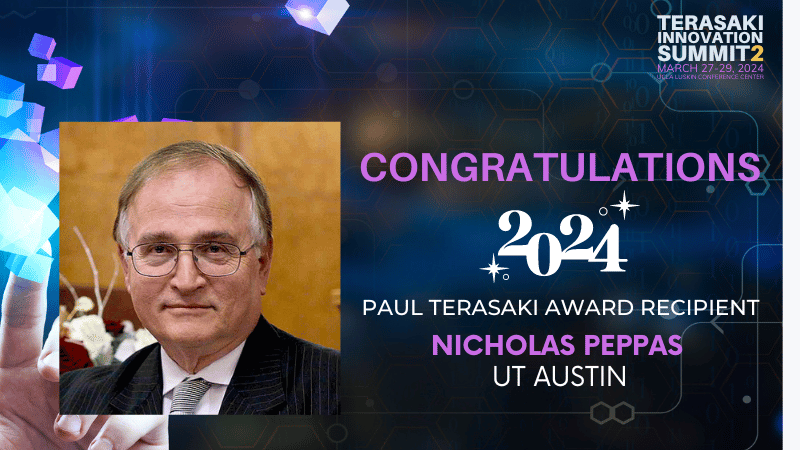 (LOS ANGELES) –The Terasaki Institute for Biomedical Innovation (TIBI) is pleased to announce their selection of Professor Nicholas A. Peppas of The University of Texas at Austin as the recipient of the 2024 Paul Terasaki Distinguished Scientist Innovation Award. The award will be presented at TIBI’s 2nd annual Terasaki Innovation Summit, to be held March 27-29, 2024, at the UCLA Meyer & Renee Luskin Conference Center.